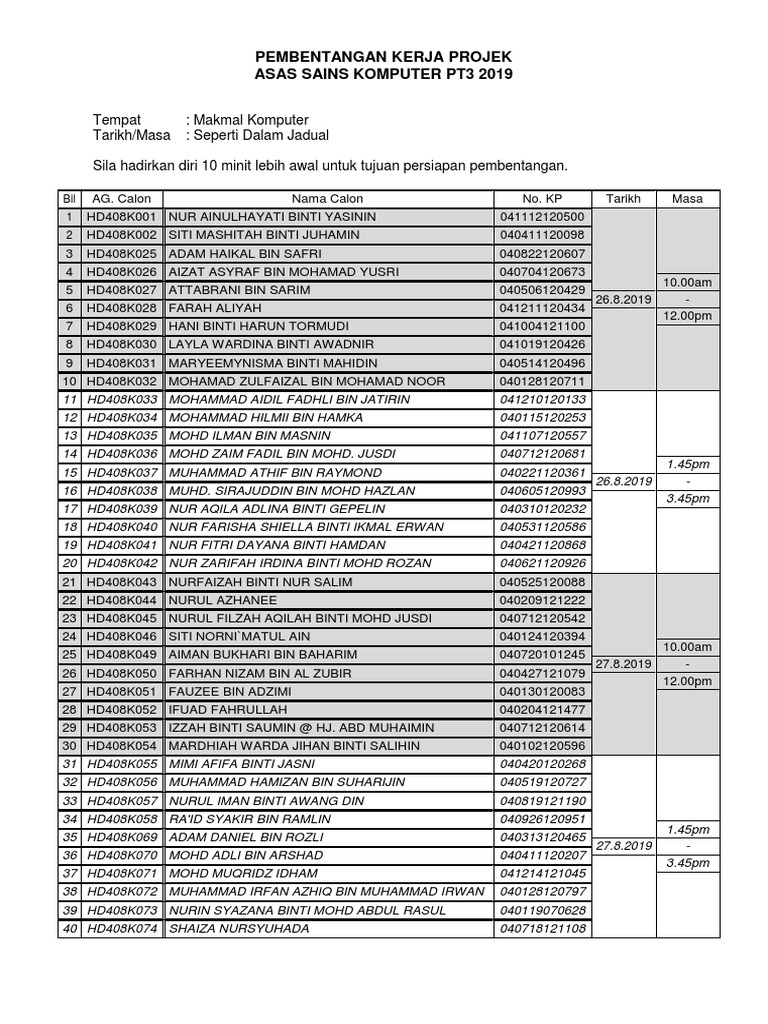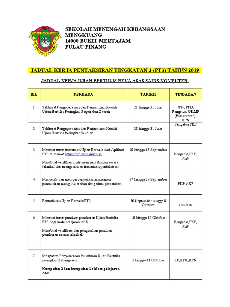Jadual Kerja Pt3 Tahun 2019 Pdf