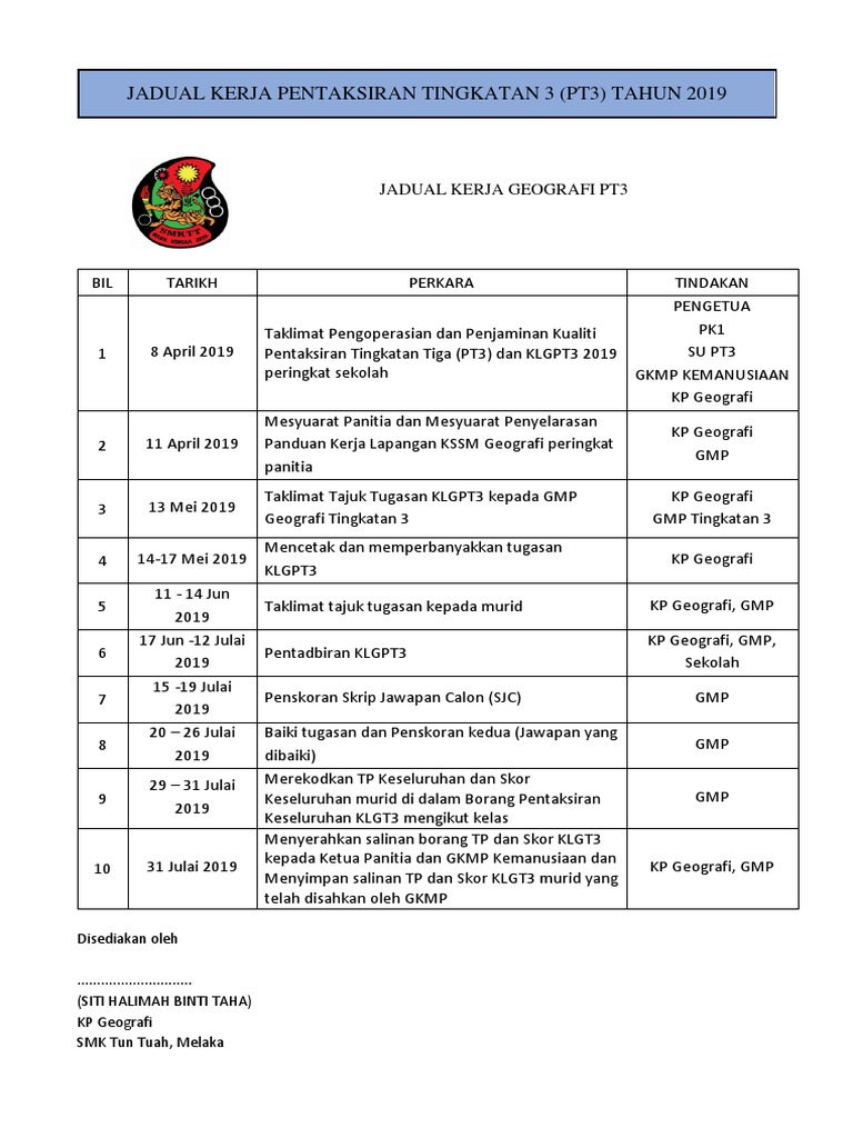 Contoh Jadual Kerja Geografi Pt3 2018 Senarai Semak Tugasan