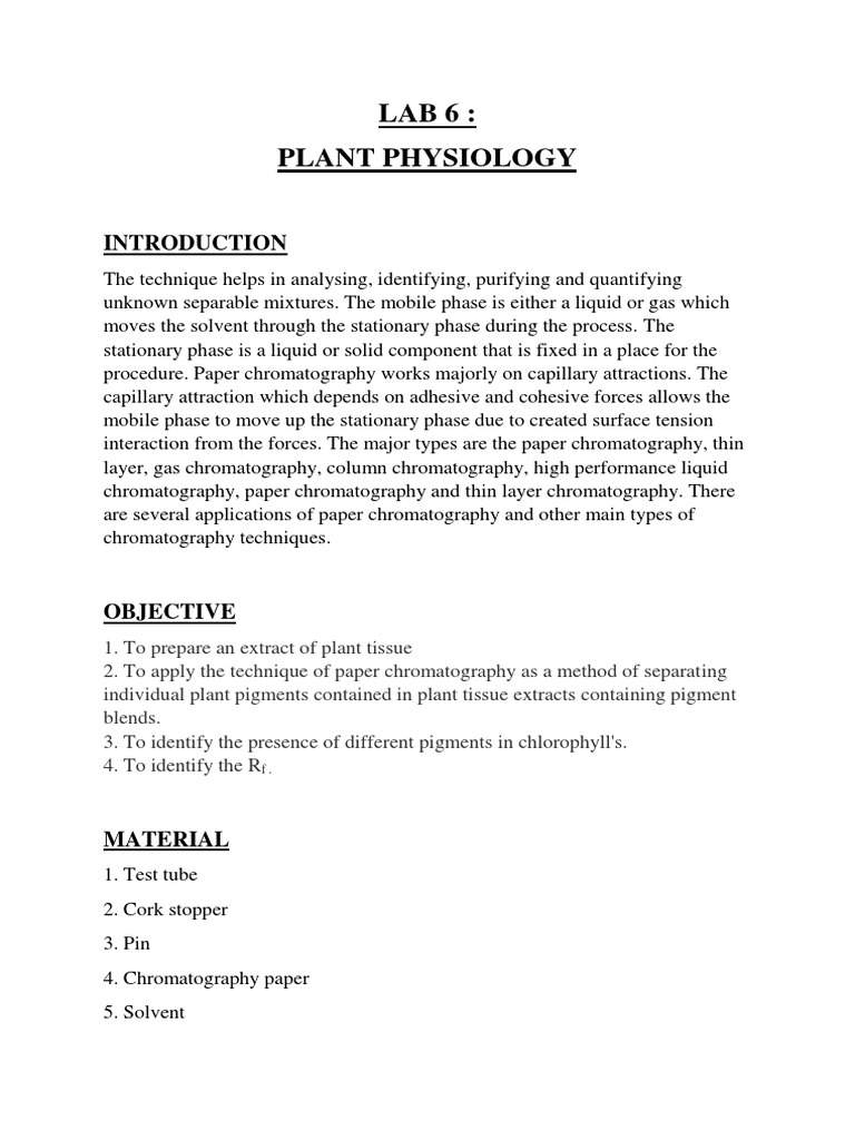 Paper chromatography lab reporttaylor richards goalspurpose- to gain an understanding of. Paper chromatography is a simple technique in which you separate. An unknown sample is also spotted onto.